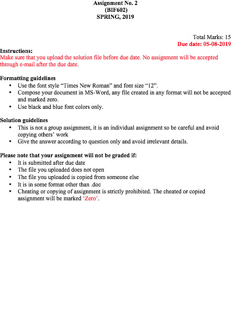 BIF602 Assignment No.2 Solution and Discussion Fall-2019
