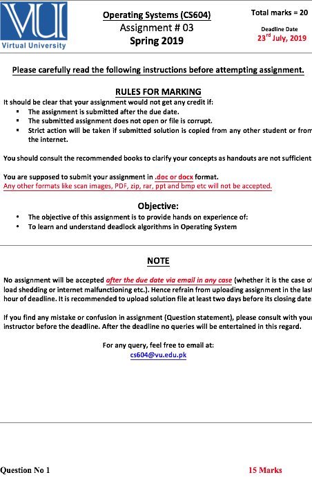 cs604@vu.edu.pkQuestion No 1 15 Marks