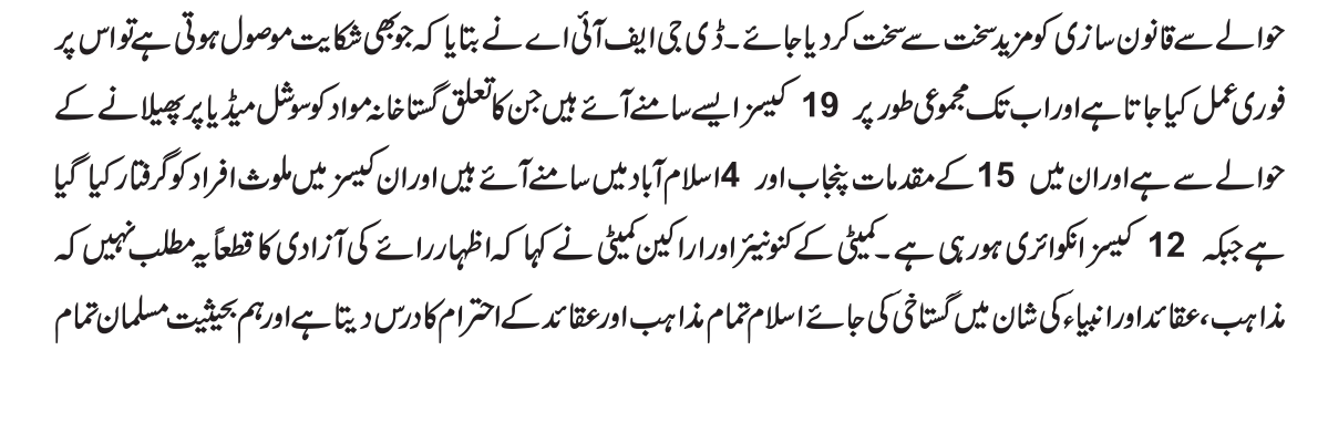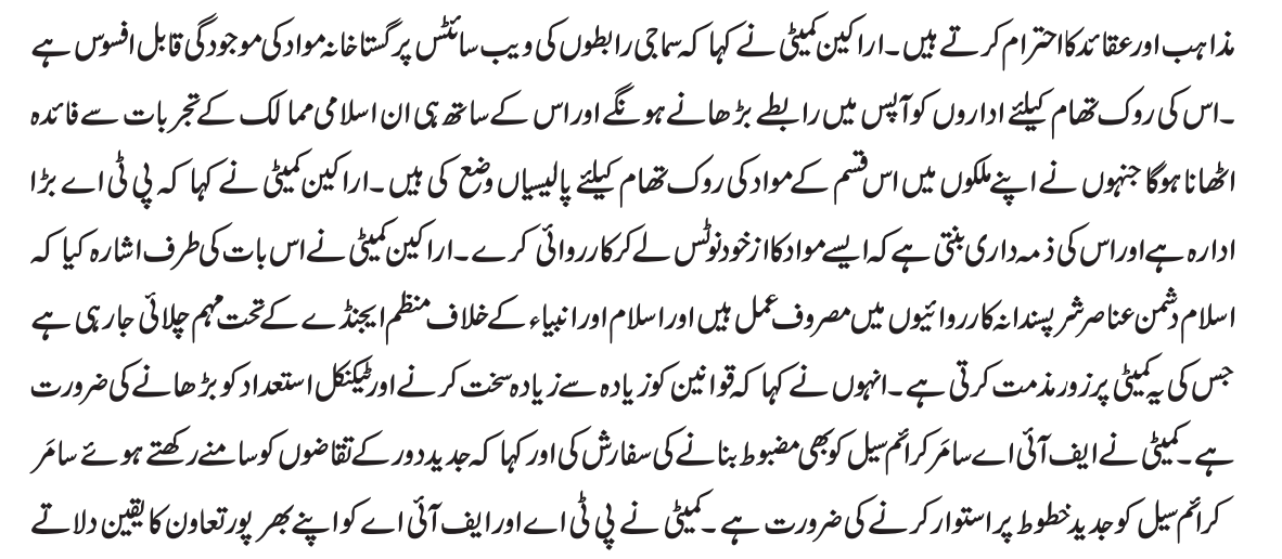 CHAIRMAN PTA'S COMMENTS REGARDING BLASPHEMOUS CONTENT ON SOCIAL MEDIA